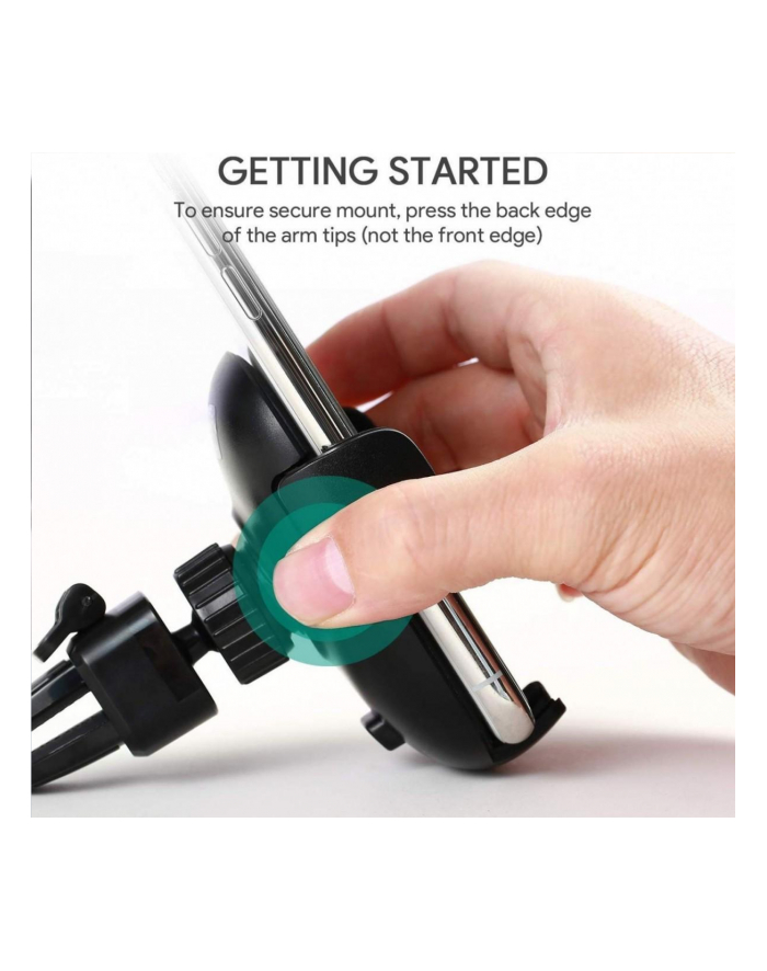 Z łatwością umieść i wyjmij telefon za pomocą szeroko regulowanej podstawki telefonu z przyciskiem natychmiastowego zwolnienia. Obrotowy i obracany o 360 ° przegub kulowy zapewnia idealny kąt widzenia i umożliwia szybkie przełączanie między widokiem pionowym i poziomym. Uchwyt jest wyściełany miękkim silikonem, aby zapewnić płynny kontakt z urządzeniem i zapobiec zarysowaniom.