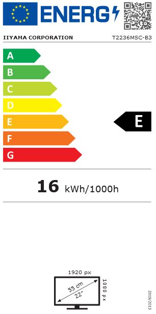 iiyama ProLite T2236MSC-B3. Długość przekątnej ekranu: 54,6 cm (21.5"), Rozdzielczość: 1920 x 1080 px, Typ HD: Full HD, Technologia wyświetlacza: LCD, Czas odpowiedzi (typowy): 5 ms, Natywne proporcje obrazu: 16:9, Kąt widzenia (poziomy): 178°, Kąt widzenia (pionowy): 178°. Wbudowane głośniki. Wbudowany USB hub, Wersja USB hub: 3.2 Gen 1 (3.1 Gen 1). Standard VESA. Kolor produktu: Czarny
