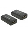 Repeater HDMI Delock może być używany do wzmocnienia sygnału z połączenia HDMI do 30 m. W ten sposób można podłączyć kabel długości do 20 m od komputera lub laptopa do portu wejściowego repeater'a, a od strony wyjścia można podłączyć kabel do długości 10 m, który zostanie podłączony do monitora lub telewizora.Repeater obsługuje rozdzielczości do Ultra HD (4K) i jest wstecznie kompatybilny z Full-HD 1080p.