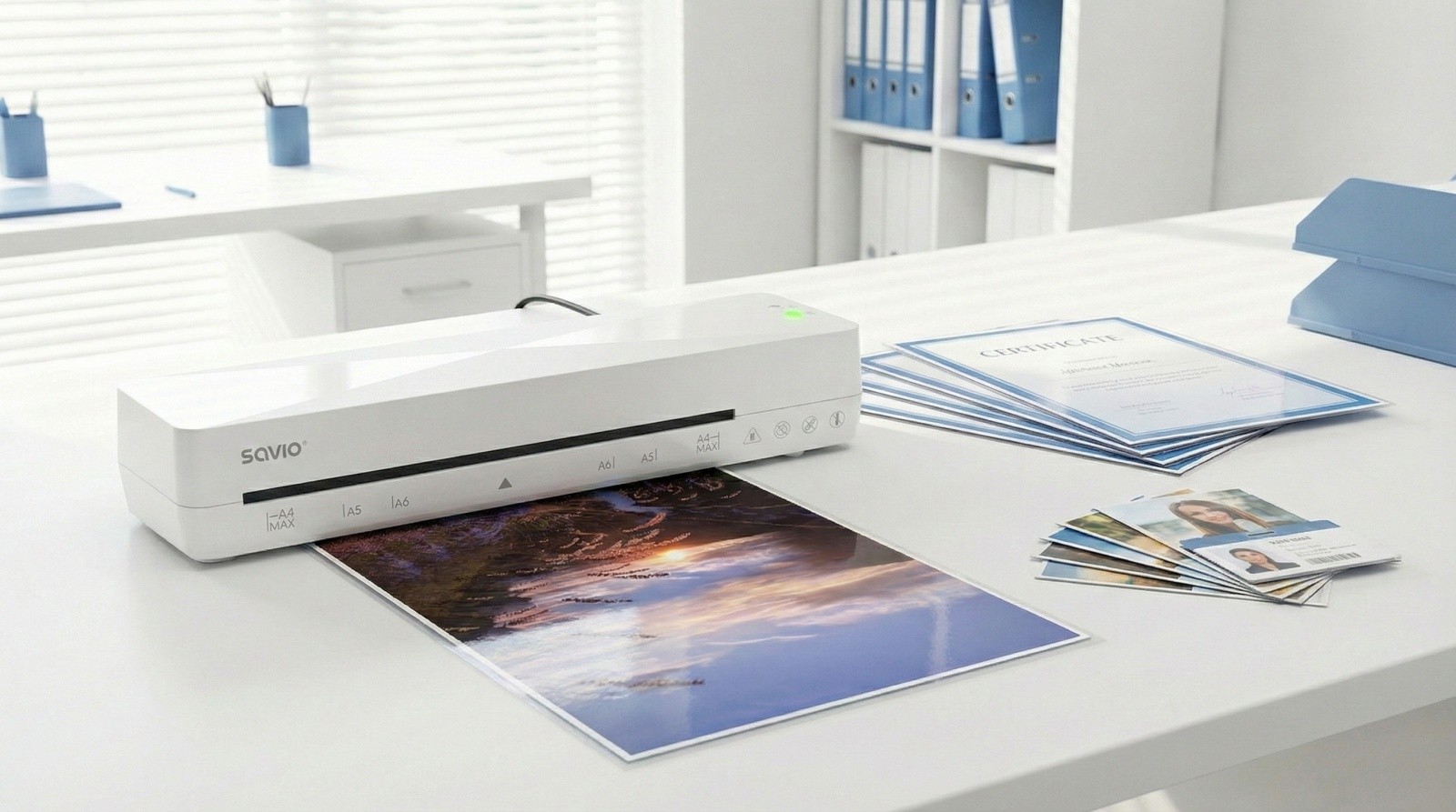- Obsługiwane formaty laminacji: do 230 mm (A4, A5, A6)