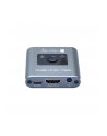 Techly IDATA HDMI-2128KT. Rodzaj portu wideo: HDMI. Kolor produktu: Szary, Maksymalna częstotliwość odświeżania: 60 Hz, Maksymalny zasięg działania: 2 m. Napięcie wyjściowe adaptera AC: 5 V, Prąd wyjściowy adaptera AC: 1 A. Certyfikaty: CE, FCC, RoHS. Ilość na paczkę: 1 szt., Przewody: USB